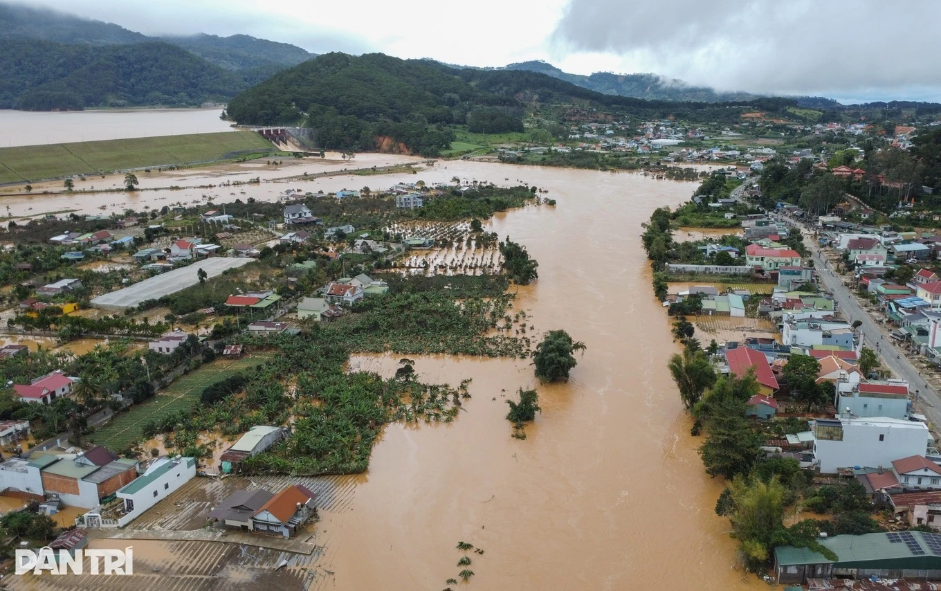 Xã D'ran, tỉnh Lâm Đồng, ngập sâu khi thủy điện xả lũ hôm 22/11 vừa qua (Ảnh: Minh Hậu).
