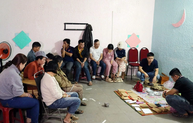 Tại hiện trường, lực lượng chức năng xác định tổng số tiền các đối tượng sử dụng để đánh bạc hơn 73 triệu đồng, trong đó thu giữ trên chiếu bạc hơn 18 triệu đồng. Tang vật thu giữ gồm: tiền mặt, dĩa, tô kim loại, 6 hạt xúc xắc, tấm bầu cua, mền và chiếu dùng để tổ chức đánh bạc.