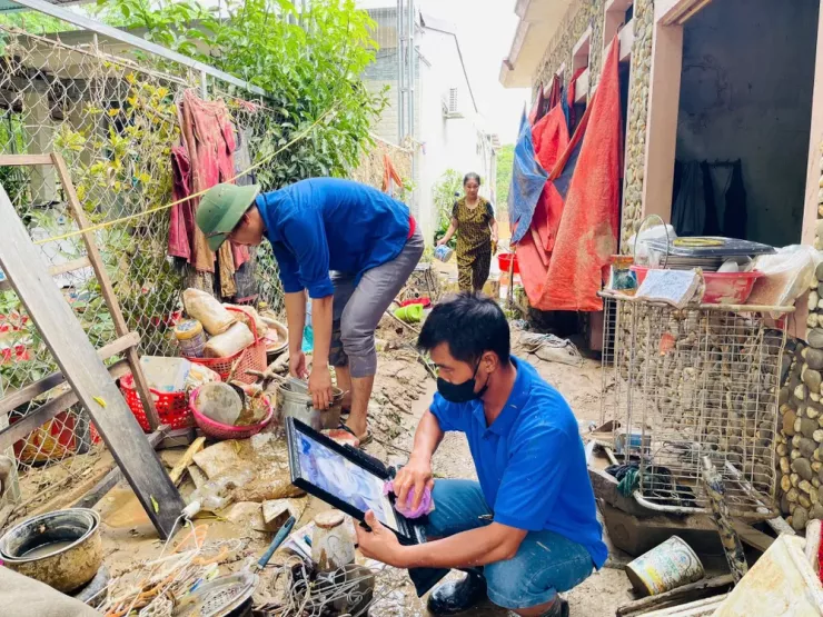 Đoàn viên thanh niên giúp người dân ở xã Tương Dương (Nghệ An) dọn bùn, khắc phục hậu quả sau mưa lũ.