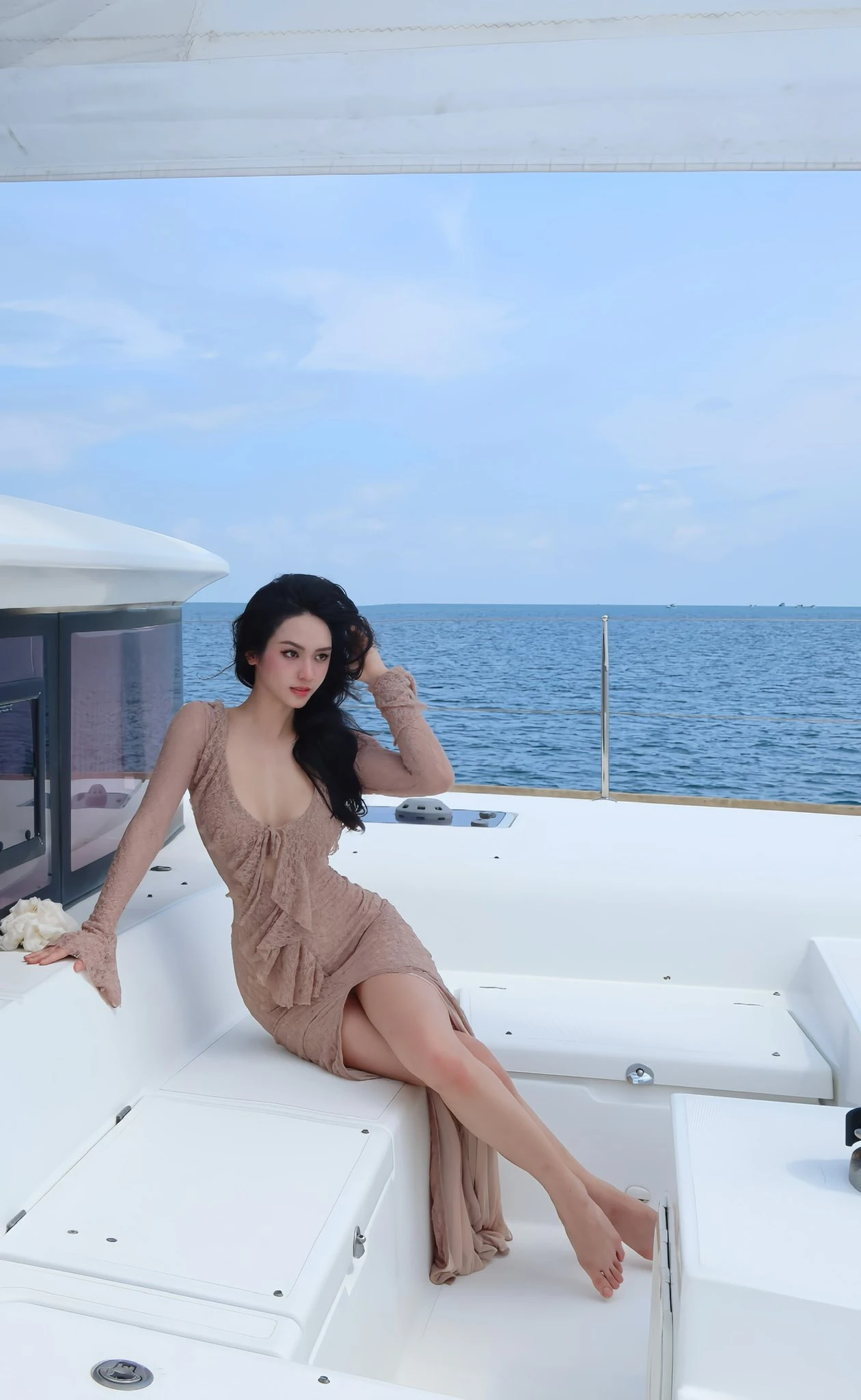 Trên trang cá nhân mới đây, Vũ Thuý Quỳnh đã đăng tải loạt ảnh check-in trên du thuyền riêng, diện váy màu nude ôm sát, tôn lên vóc dáng quyến rũ cùng nhan sắc rạng ngời. Điều trùng hợp là du thuyền mà Vũ Thúy Quỳnh đăng tải lại chính là nơi Đức Phạm vừa đăng ảnh ngọt ngào của cả hai.