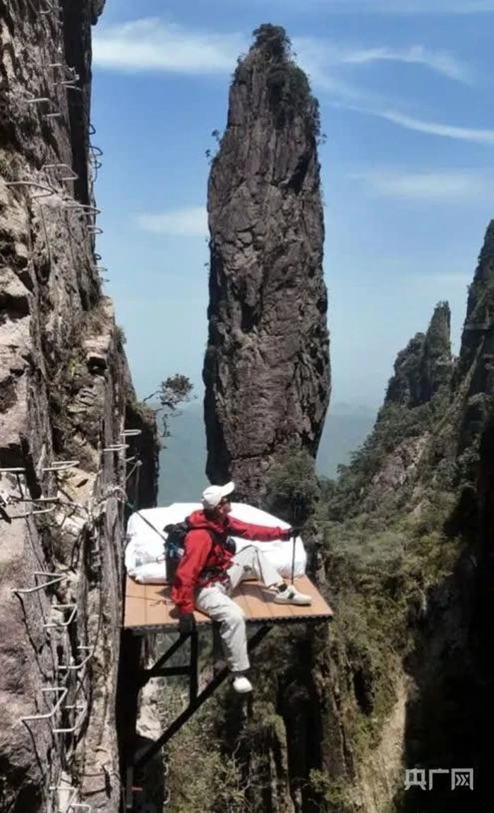 Chiếc ván gỗ được đặt trên mép vách đá trong khu du lịch ở Trung Quốc trở thành điểm check-in mạo hiểm hút khách.