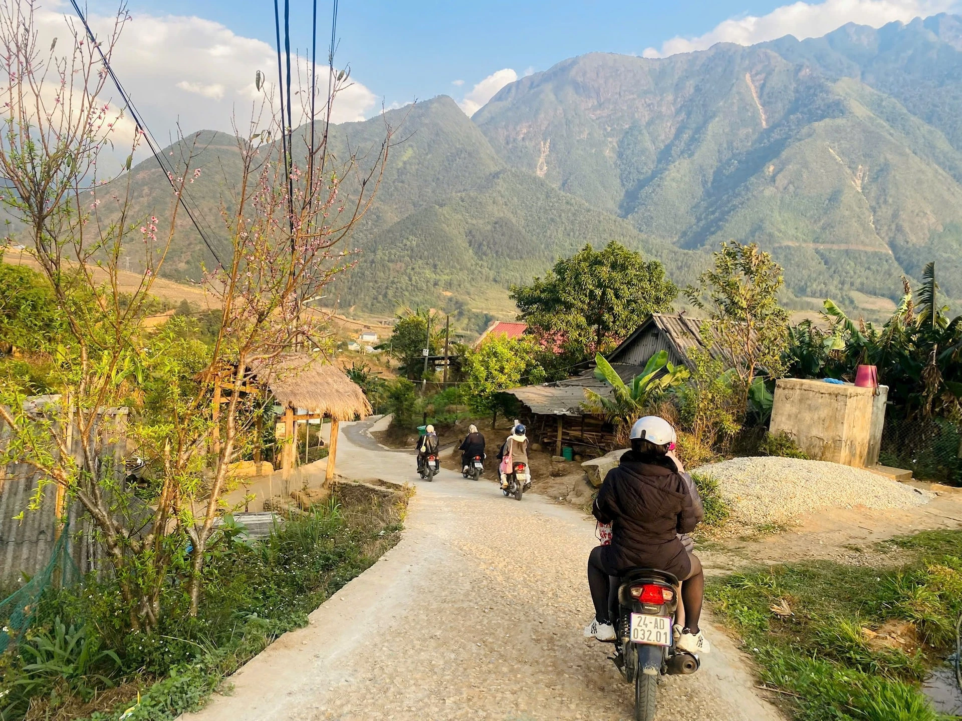 Du khách tự thuê xe máy băng rừng đến những bản du lịch cộng đồng của bà con người Mông. Ảnh: Bảo Hân