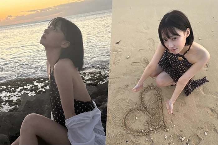 Trong ảnh, Winter xuất hiện giữa khung cảnh hoàng hôn đỏ rực, khoác lên mình bộ áo tắm cổ yếm họa tiết chấm bi tông nâu trầm. Thiết kế tối giản nhưng tinh tế giúp nữ idol tôn trọn bờ vai mảnh mai cùng phần lưng săn chắc, tạo nên tổng thể vừa gợi cảm vừa sang trọng. Góc nghiêng khi cô ngồi trên bãi đá, lặng lẽ nhìn ra biển càng khiến khung hình mang đậm chất điện ảnh, gợi liên tưởng đến một bộ ảnh thời trang cao cấp.