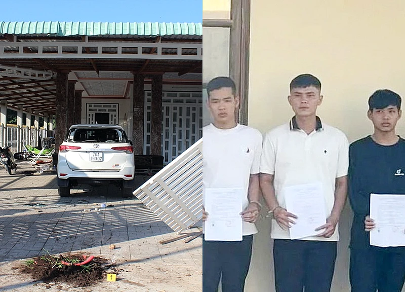 Sau khi kéo đến nhà ông M. ở xã Tân Thạnh (Tây Ninh) ném gạch, đá vào nhà, nhóm thanh niên phát hiện gia chủ lái ô tô quay về nên tiếp tục ném đá vào phương tiện.