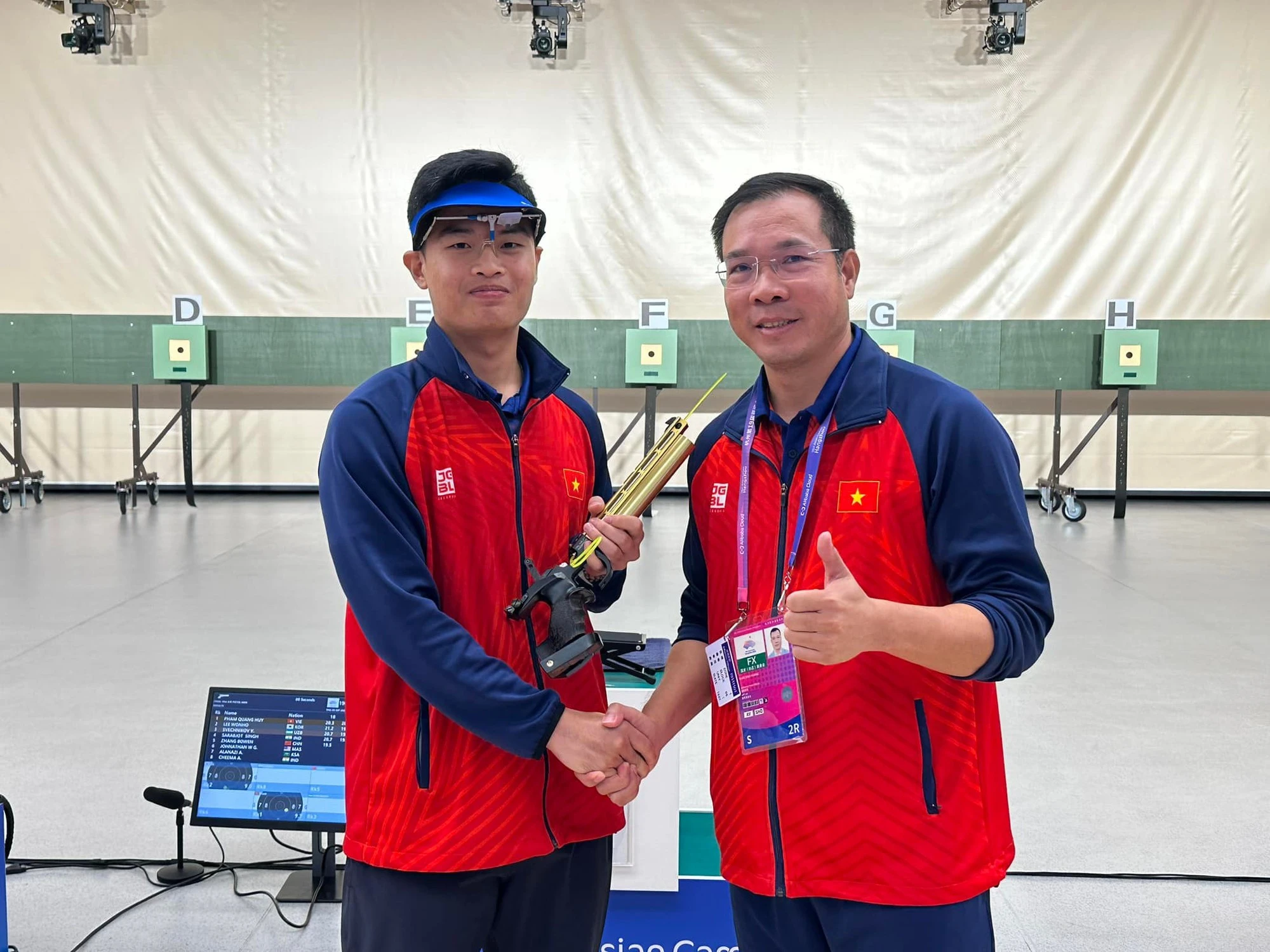 Xạ thủ Hoàng Xuân Vinh và học trò Quang Huy
