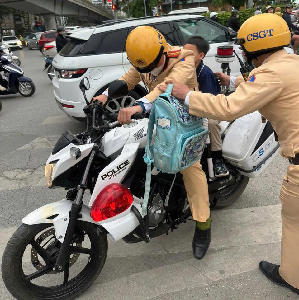 Khoảng 16 giờ 30 ngày 31.3, trong lúc làm nhiệm vụ tại nút giao Trần Duy Hưng - Nguyễn Chánh (Q.Cầu Giấy, Hà Nội), tổ công tác của Đội CSGT đường bộ số 6, Phòng CSGT Công an TP.Hà Nội, phát hiện 1 học sinh đang ngơ ngác, mò mẫm tìm đường.