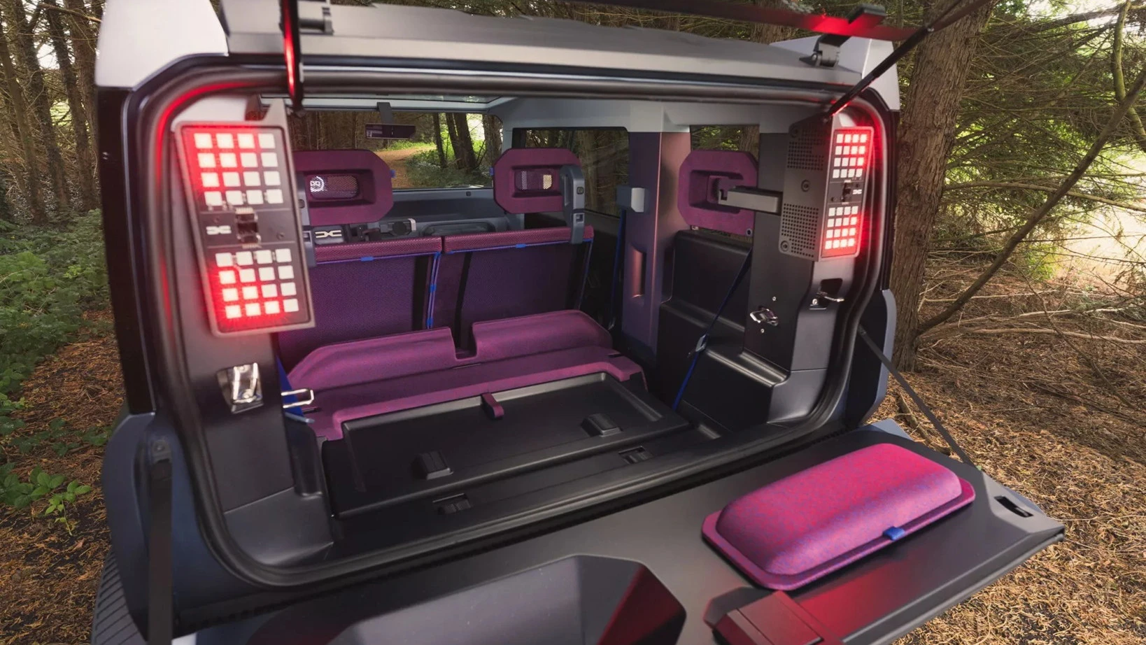 Giống như các mẫu xe thương mại khác của Dacia, chiếc concept vuông vức này được tối giản chi phí đến mức tối đa. Chẳng hạn, cụm đèn hậu hình vuông được gắn luôn vào trong kính sau, không cần thêm lớp kính riêng. Và tương tự thiết kế như trên mẫu Porsche 911 GT3 RS, tay nắm cửa truyền thống được thay bằng dây vải, vừa nhẹ hơn vừa rẻ hơn.
