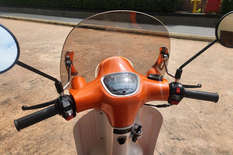 Khách hàng mua MODA Moca có thể gắn thêm phụ kiện bao gồm kính chắn gió và cốp đựng đồ phía sau.