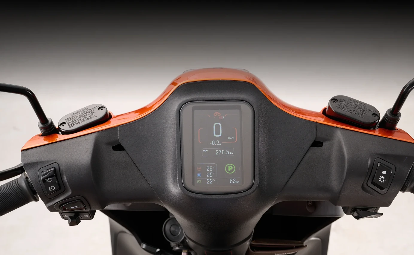 Nhà sản xuất cho biết, bộ đèn này cũng giúp ánh sáng được tập trung và sáng hơn đến 20%. Bên cạnh đó, đồng hồ LCD điện tử size 5 inches trên xe hiển thị đầy đủ thông số vận hành: Số kilomet di chuyển, vận tốc, vạch năng lượng, tín hiệu xin hướng…