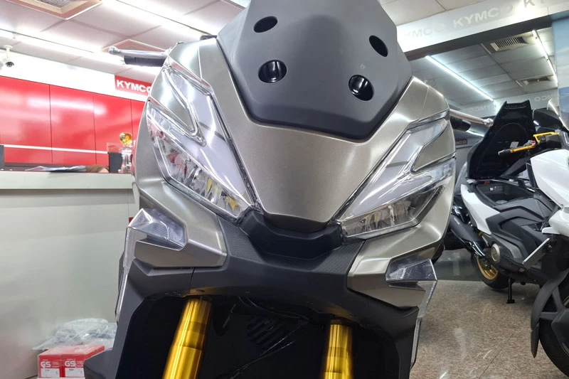 Về thiết kế, Kymco Racing X350 2026 mang dáng vẻ hầm hố với phần đầu "mỏ chim" đặc trưng, các đường gân dọc thân xe sắc nét, thể hiện rõ tinh thần năng động và tốc độ. Hệ thống đèn LED chiếu sáng kép ban ngày kết hợp với đèn pha công nghệ cao mang đến hiệu ứng thị giác mạnh mẽ và hiện đại.