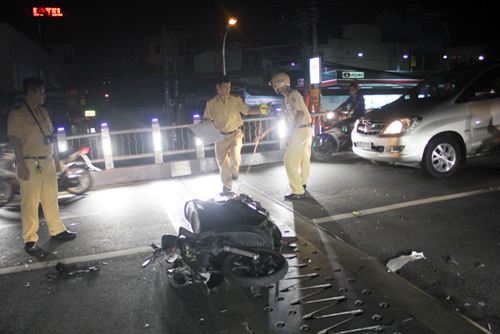 Vụ tai nạn xảy ra lúc 21h, ngày 3-11, ngay giữa cầu vượt thép Hoàng Hoa Thám (đoạn thuộc P.14, Q.Tân Bình, TP.Hồ Chí Minh).