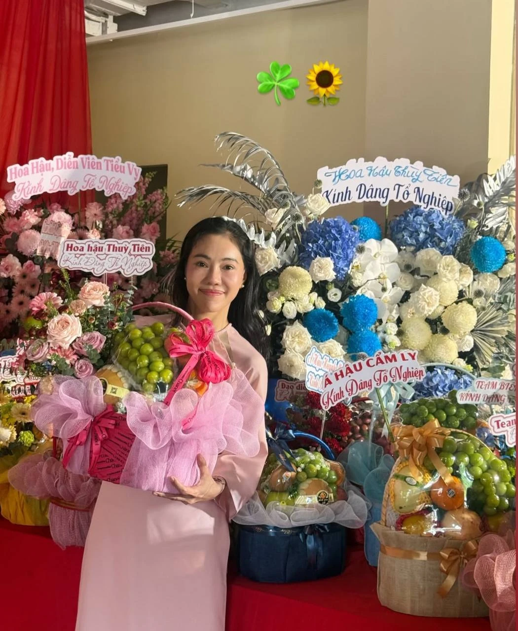 Mới đây, mạng xã hội lan truyền một bức ảnh chụp tấm bảng cắm trên lẵng hoa chúc Tết có nhắc đến tên Thuỳ Tiên. Cụ thể, trên tấm bảng ghi: “Xuân Bính Ngọ 2026. Nguyễn Thúc Thuỳ Tiên cung chúc tân Xuân đến với Công Ty Sen Vàng và anh chị em yêu quý xa gần…”.