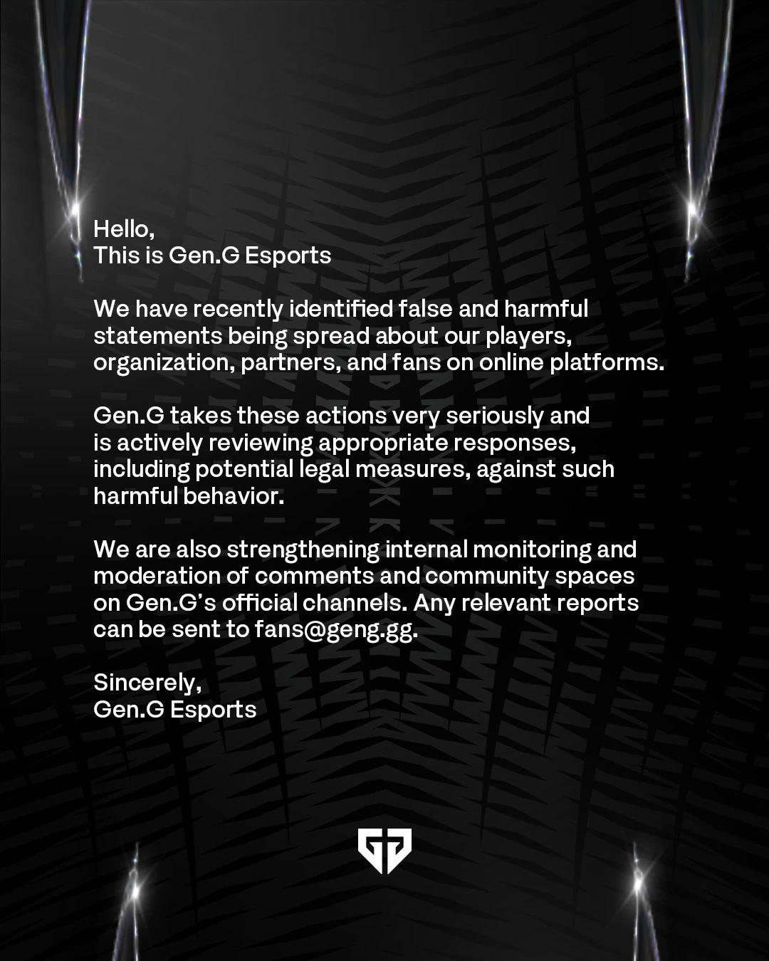 Trong một thông báo mới nhất, Gen.G đã yêu cầu chấm dứt các tin đồn xung quanh đội tuyển cũng như tuyển thủ. Đây là một hành động dễ hiểu và hợp lý để bảo vệ các tuyển thủ trước khi thị trường chuyển nhượng cuối mùa chính thức mở cửa. Tuy nhiên, sau một mùa chuyển nhượng 2024 – 2025 quá nhiều drama, khán giả cũng cần chuẩn bị tinh thần cho mọi tình huống có thể xảy ra.