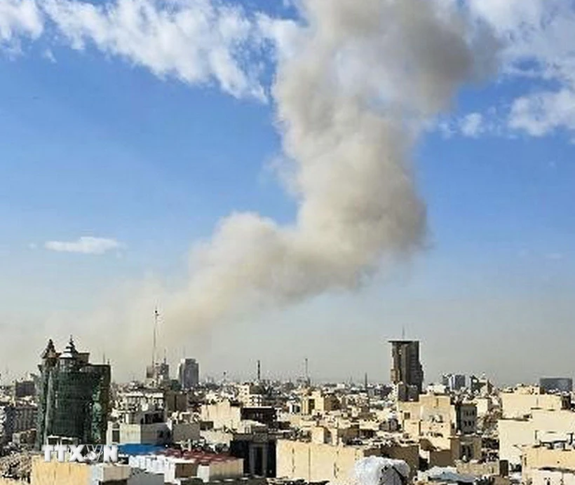 Khói bốc lên từ thủ đô Tehran, Iran sau cuộc không kích của Israel ngày 28/2/2026. (Ảnh: Kyodo/TTXVN)